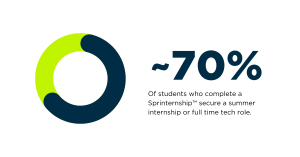 Sprinternships™ run for three weeks during academic breaks and are hosted by a vast array of employers, including American Express, Capital One, Google, and Ticketmaster. Each experience is unique—harnessing your limitless potential to define the future of tech.